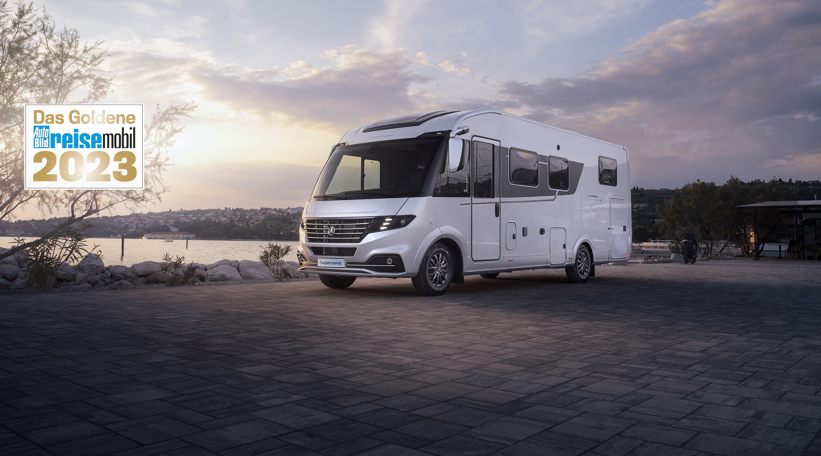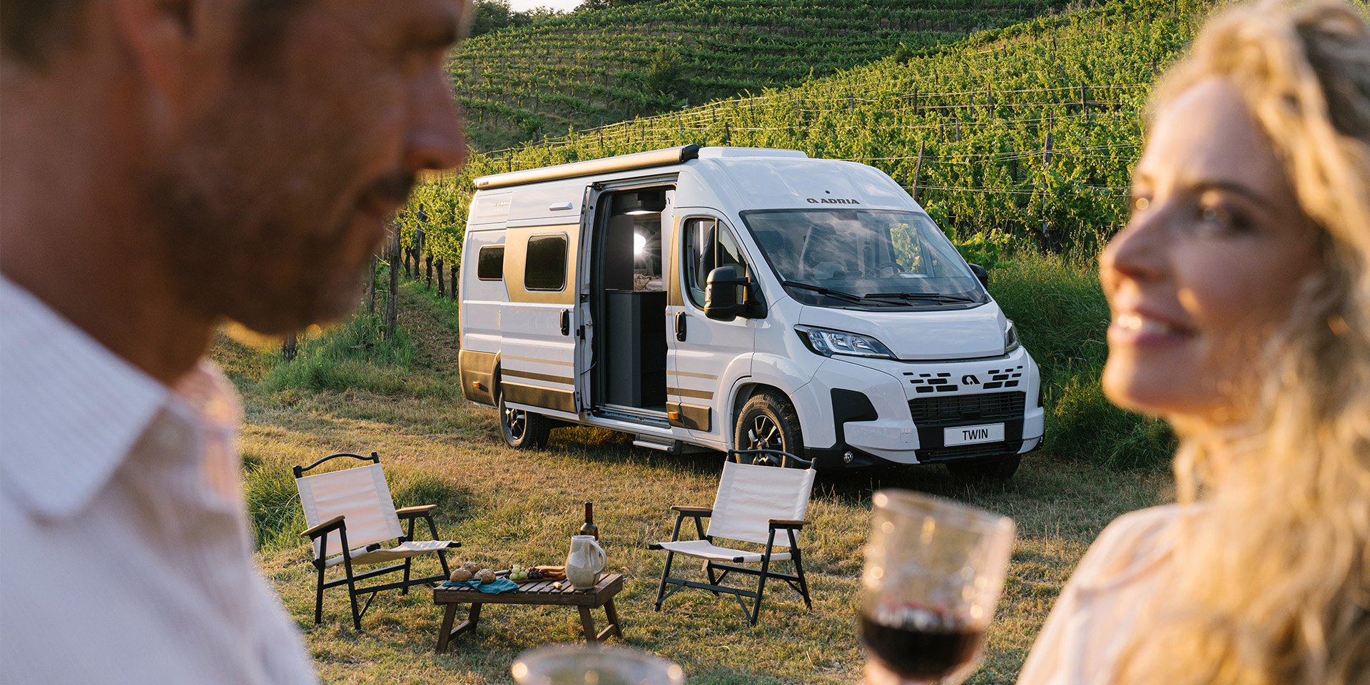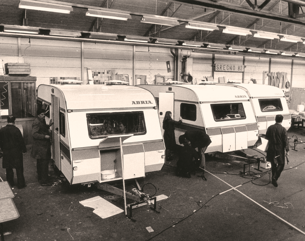 Sprong in het verleden / Adria caravans met de beroemde blauwe streep